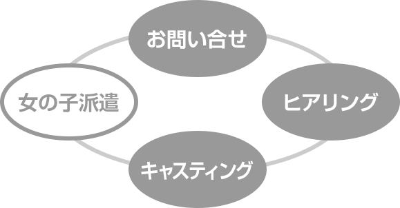 コンパニオンご紹介までのフローです。時期や契約内容によって異なる場合もございますので、詳しくは各担当者にお問い合わせください。